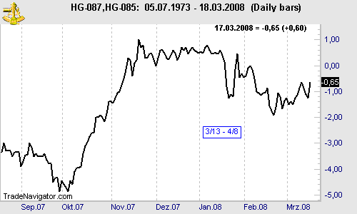 May '08 Copper (HGN8 – HGK8). This spread moved down in January