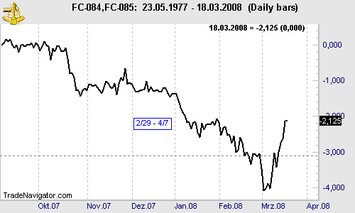 Now it seems the spread is in an uptrend since February 21. The