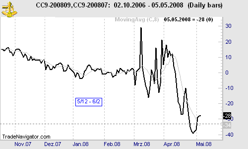 This week we look at CCU8 – CCN8: long September '08 Cocoa and short July '08 Cocoa