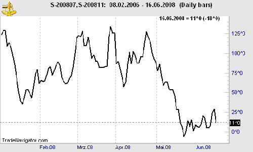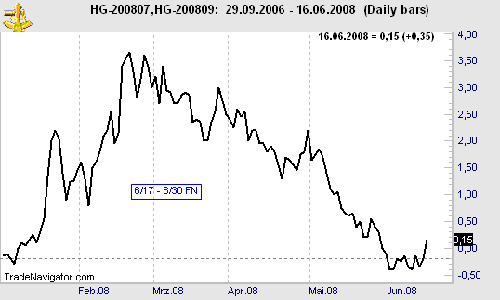 short Septermber '08 Copper (COMEX) (HGN8 – HGU8). The spread