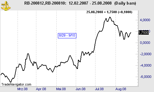 This week we look at RBZ8 – RBV8: long December '08 RBOB and short October '08 RBOB