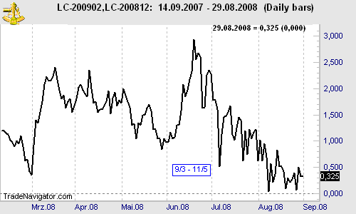 This week we look at LCG9 – LCZ8: long February '09 Live Cattle and short December '08 Live Cattle