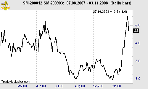calendar spread SMZ8 - SMH9 at -7.2 limit. Initial margin is $270