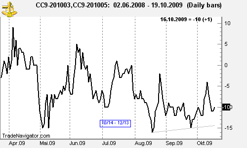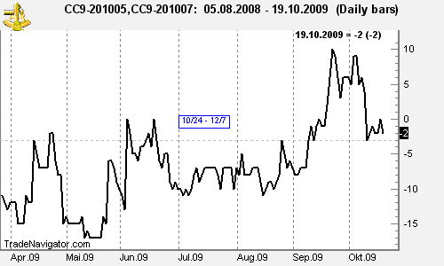 This week we look at CCK0 – CCN0: long May 2010 Cocoa and short July 2010 Cocoa (ICE former NYBOT).